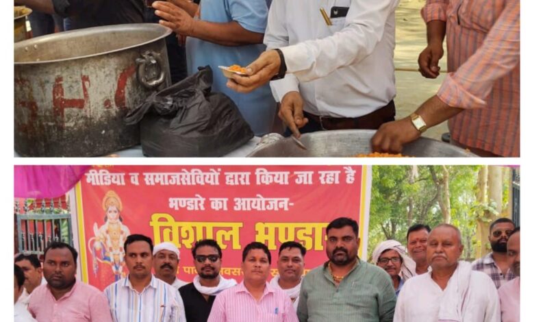 ज्येष्ठ माह के इस साल के आखरी शनिवार को मीडिया एवं से समाजसेविओं द्वारा लखनऊ मेदांता अंडरपास हरिहरपुर रोड मंदिर पर इस साल के ज्येष्ठ माह के पावन पर्व के आखरी शनिवार पर विशाल भंडारी का आयोजन किया। सर्वप्रथम हनुमान जी की पूजा अर्चना कर हनुमान जी को भोग लगाकर भक्तों में प्रसाद वितरण का कार्यक्रम किया गया जिसमें हजारों की संख्या में लोगों ने प्रसाद ग्रहण किया। संयोजक राकेश कुमार मिश्रा (पत्रकार), अनूप सिंह (पत्रकार), राहुल सिंह (पत्रकार), अनुज तिवारी (पत्रकार), अनिल कुमार (पत्रकार), समाजसेवी एस.पी. सिंह, इज़हार मामा, विपिन सिंह, धर्मेंद्र सिंह, सत्य प्रकाश पाण्डेय, लल्लन यादव, दुर्गा यादव, उमानाथ मिश्रा, रामकृपाल मौर्य एवं समस्त क्षेत्र वासियों द्वारा भक्तों में प्रसाद वितरण किया गया।और जय श्रीराम जय बजरंगबली के नारों के साथ समापन हुआ।