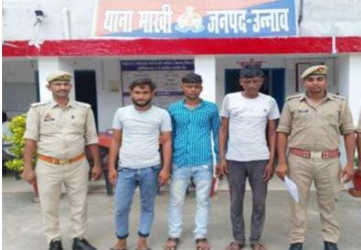 उन्नाव।।थाना माखी पुलिस द्वारा गैंगस्टर एक्ट में वांछित अभियुक्तों को गिरफ्तार किया गया। थाना माखी प्रभारी निरीक्षक द्वारा दी गई जानकारी के अनुसार शनिवार को थानाध्यक्ष संदीप कुमार मिश्रा मय हमराह पुलिस बल द्वारा थाना सफीपुर पर पंजीकृत गैगेस्टर एक्ट से सम्बन्धित चार अभियुक्तो अमन पुत्र चाँद बाबू उम्र करीब 21 वर्ष , पप्पू उर्फ मोले पुत्र नबाब उम्र करीब 22 वर्ष, मल्हू पुत्र कल्लू उम्र करीब 40 वर्ष व सिराज पुत्र जलील उम्र करीब 42 वर्ष निवासी मो0 मियां बाजार कस्बा व थाना सफीपुर जनपद उन्नाव (दिव्यांग) को गिरफ्तार कर न्यायालय के समक्ष पेश किया ।