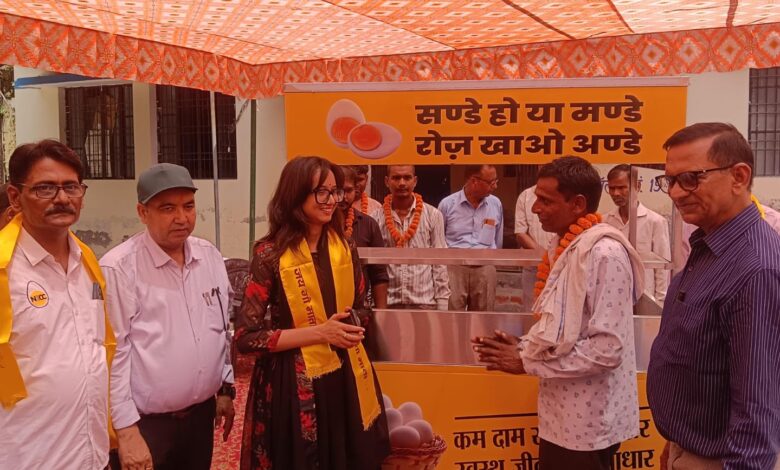 शहर के पशु चिकित्सा कार्यालय परिसर में केंद्र और प्रदेश सरकार की मंशा के अनुरूप आई ए एस ,मुख्य विकास अधिकारी कृति राज ने सरकार द्वारा स्व रोजगार डंडी की प्राथमिकता के क्रम में गरीबों को रोजगार प्रदान करने और उनके मनोबल को बढ़ावा देने के क्रम में जिले के 10 अंडा विक्रेताओं /लाभार्थियों को एग कार्ट (EGG CART) का वितरण किया