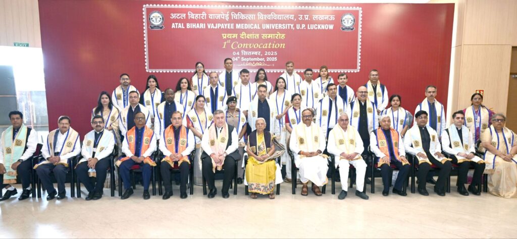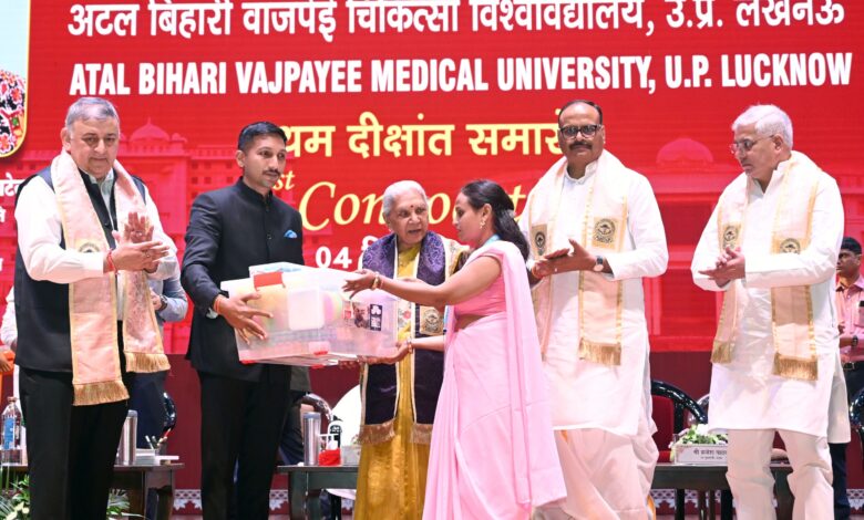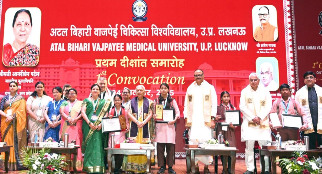 लखनऊ, 04 सितम्बर। प्रदेश की राज्यपाल एवं राज्य विश्वविद्यालयों की कुलाधिपति श्रीमती आनंदीबेन पटेल की अध्यक्षता में अटल बिहारी वाजपेई चिकित्सा विश्वविद्यालय, लखनऊ का प्रथम दीक्षांत समारोह भव्यता एवं गरिमा के साथ सम्पन्न हुआ। इस अवसर पर राज्यपाल ने कुल 8507 उपाधियाँ प्रदान कीं, जिनमें से 6150 उपाधियाँ छात्राओं को प्राप्त हुईं। यह कुल संख्या का लगभग 72 प्रतिशत है। समारोह में उत्कृष्ट प्रदर्शन करने वाले 73 छात्र-छात्राओं को स्वर्ण एवं रजत पदक दिए गए, जिनमें से 82 प्रतिशत पदकधारी छात्राएँ रहीं।