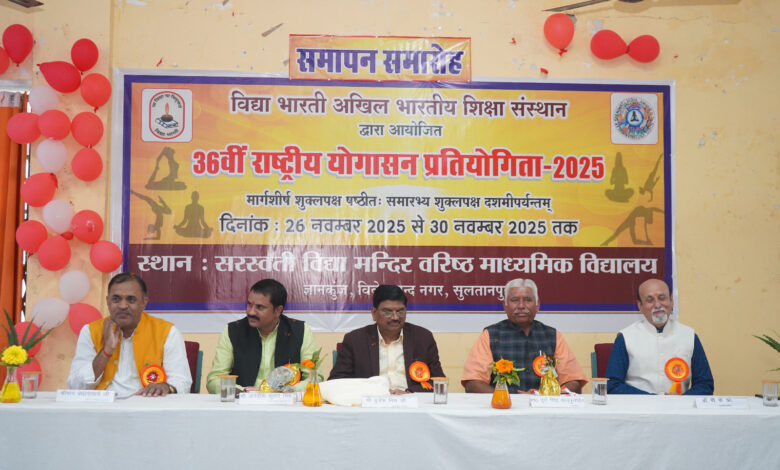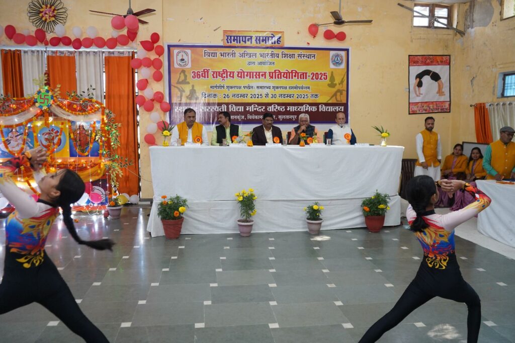 सुल्तानपुर – स्थित सरस्वती विद्या मन्दिर वरिष्ठ माध्यमिक विद्यालय, ज्ञान कुंज, विवेकानन्द नगर में शनिवार को विद्या भारती अखिल भारतीय शिक्षा संस्थान द्वारा आयोजित 36वीं राष्ट्रीय योगासन प्रतियोगिता का विधिवत समापन हुआ। विद्या भारती की संस्कृति बोध परियोजना के राष्ट्रीय संयोजक एवं प्रतियोगिता पर्यवेक्षक, दुर्ग सिंह राजपुरोहित ने जानकारी देते हुए बताया कि समापन कार्यक्रम की शुरुआत सरस्वती वंदना से हुई। प्रधानाचार्य राकेश मणि त्रिपाठी ने मुख्य अतिथियों का परिचय कराया तथा अंगवस्त्र और श्रीफल देकर स्वागत किया।