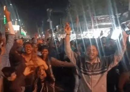 सड़कों पर डांस, मिठाई और आतिशबाजी