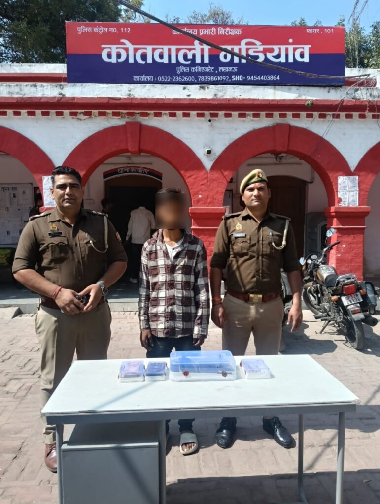 पुलिस द्वारा दी गई जानकारी के अनुसार, अभियुक्तों के कब्जे से निम्नलिखित सामान बरामद हुआ है। मुखबिर की सटीक सूचना पर प्रधान मैरिज हॉल कट के पास से पुलिस टीम ने घेराबंदी कर तीनों संदिग्धों को पकड़े गए अभियुक्त की पहचान सोनू मौर्य (हालपता मुगीऺ फर्म के पास हरिओम नगर नौबस्ता बताया दो बाल अपचारी है, थाना मड़ियांव लखनऊ,