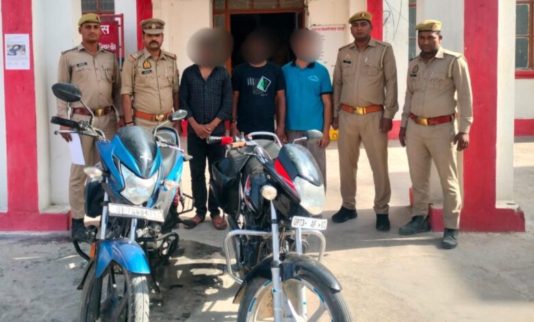 गिरफ्तारी का विवरण- अभिमन्यु मांगलिक, पुलिस अधीक्षक फतेहपुर के निर्देशन में अपराध एवं अपराधियों पर प्रभावी नियंत्रण बनाए रखने हेतु चलाए जा रहे अभियान के क्रम में, तथा अपर पुलिस अधीक्षक, जनपद फतेहपुर के पर्यवेक्षण एवं पुलिस उपाधीक्षक खागा के कुशल नेतृत्व में, थाना खागा पर पंजीकृत मु0अ0सं0 108/26 धारा 303 (2) बीएनएस की विवेचना एवं प्रभावी सुरागरसी/पतारसी के क्रम में प्रकाश में आए 03 नफर शातिर अभियुक्तों क्रमशः 1. पंकज पाण्डेय पुत्र स्व० शिवाकान्त पाण्डेय निवासी ग्राम त्रिलोचनपुर थाना खागा जनपद फतेहपुर उम्र करीब 28 वर्ष 2. रानू सारिक उर्फ सैय्यद सारिक हुसैन पुत्र सैय्यद सज्जाद हुसैन निवासी टेसाही बुजुर्ग थाना खागा जनपद फतेहपुर उम्र करीब 29 वर्ष 3. मोहित मौर्य पुत्र इन्द्रभवन मौर्य निवासी टेसाही बुजुर्ग थाना खागा जनपद फतेहपुर उम्र करीब 28 वर्ष को चोरी की 02 अदद मो0सा0 1. हीरो एचएफ डीलक्स न0 UP73AF6072 2. हाण्डा लिवो वाहन संख्या UP78GU6712 के साथ दिनांक 22.04.2026 को कल्लनपुर रोड तिराहा थाना खागा जनपद फतेहपुर से गिरफ्तार किया गया। बरामदगी के आधार पर उपरोक्त मुकदमे में धारा 317 (2)/338/336 (3)/340 (2) बीएनएस की बढ़ोत्तरी की गई है। आज दिनांक 22.04.2026 को गिरफ्तार अभियुक्तों को मा0 न्यायालय भेजा गया।