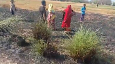 कौशाम्बी में शॉर्ट सर्किट से लगी आग एक बीघा गेहूं की फसल जलकर खाक